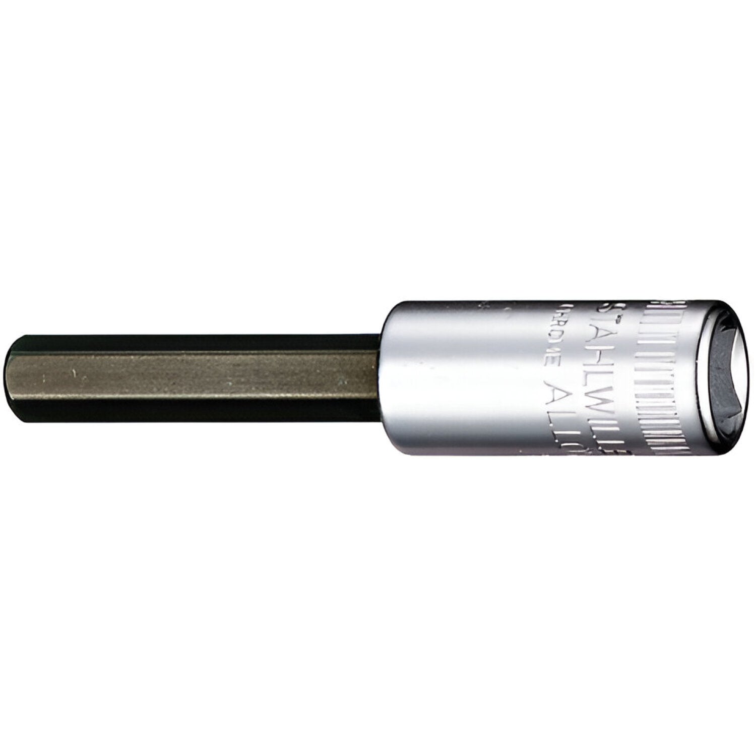 Suitable for hex socket head screws. Equipped with a 1/4" internal square drive. Manufactured from Chrome Alloy Steel, chrome-plated. Complies with DIN 7422.