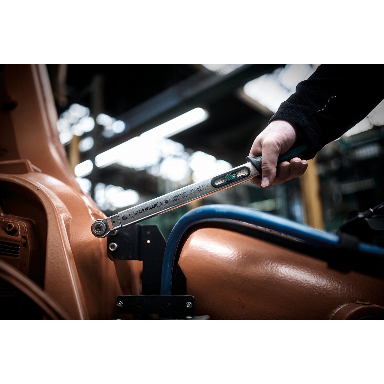 Robust, low-maintenance mechanical torque wrench with clear haptic and acoustic click. Quick torque setting via clamping lever, durable flexible rod clicking system, and outside adjustment without disassembly.Stahlwille 50184065 730 Quick Basic Wrench, Size 65*; 130-650 Nm, 14x18 mm