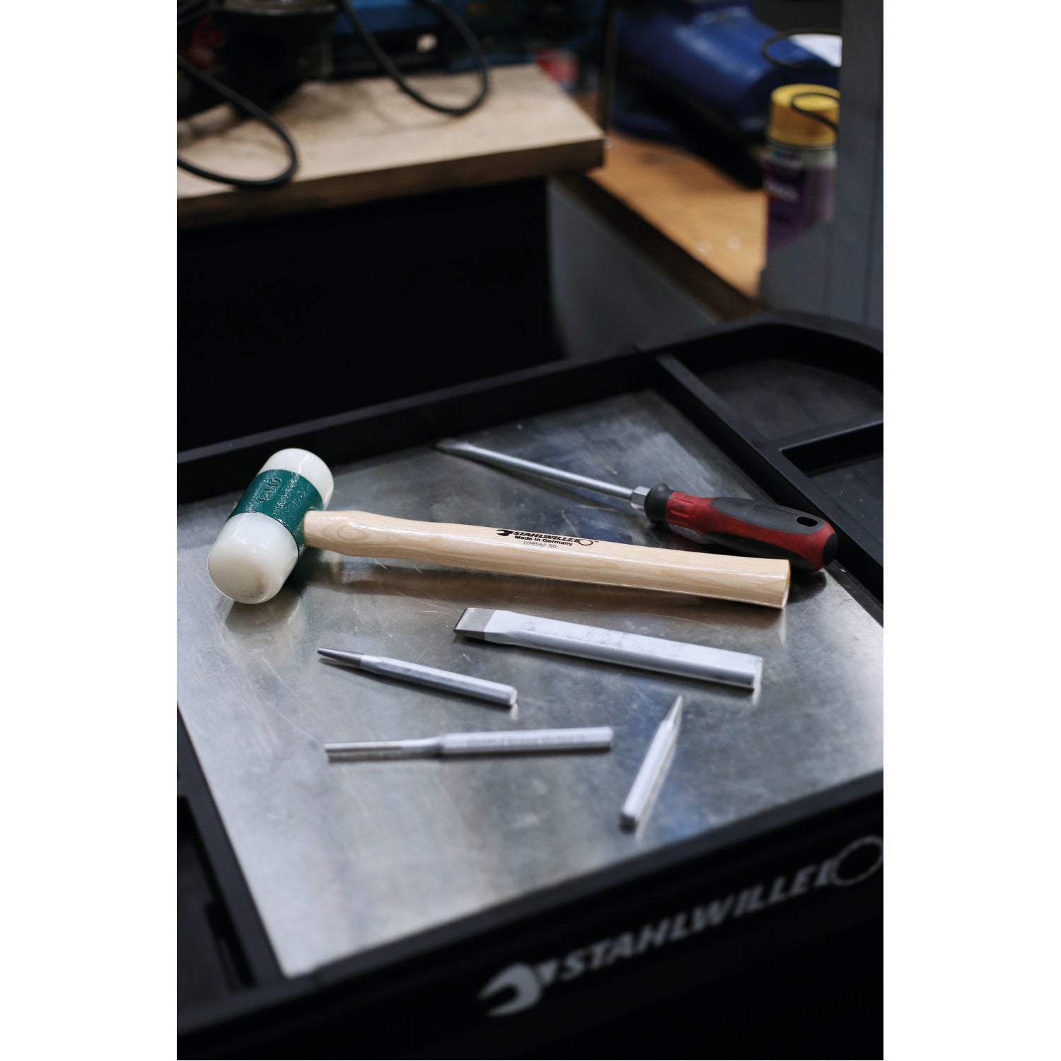 - With interchangeable heads made of impact-resistant nylon VESTAMID®
