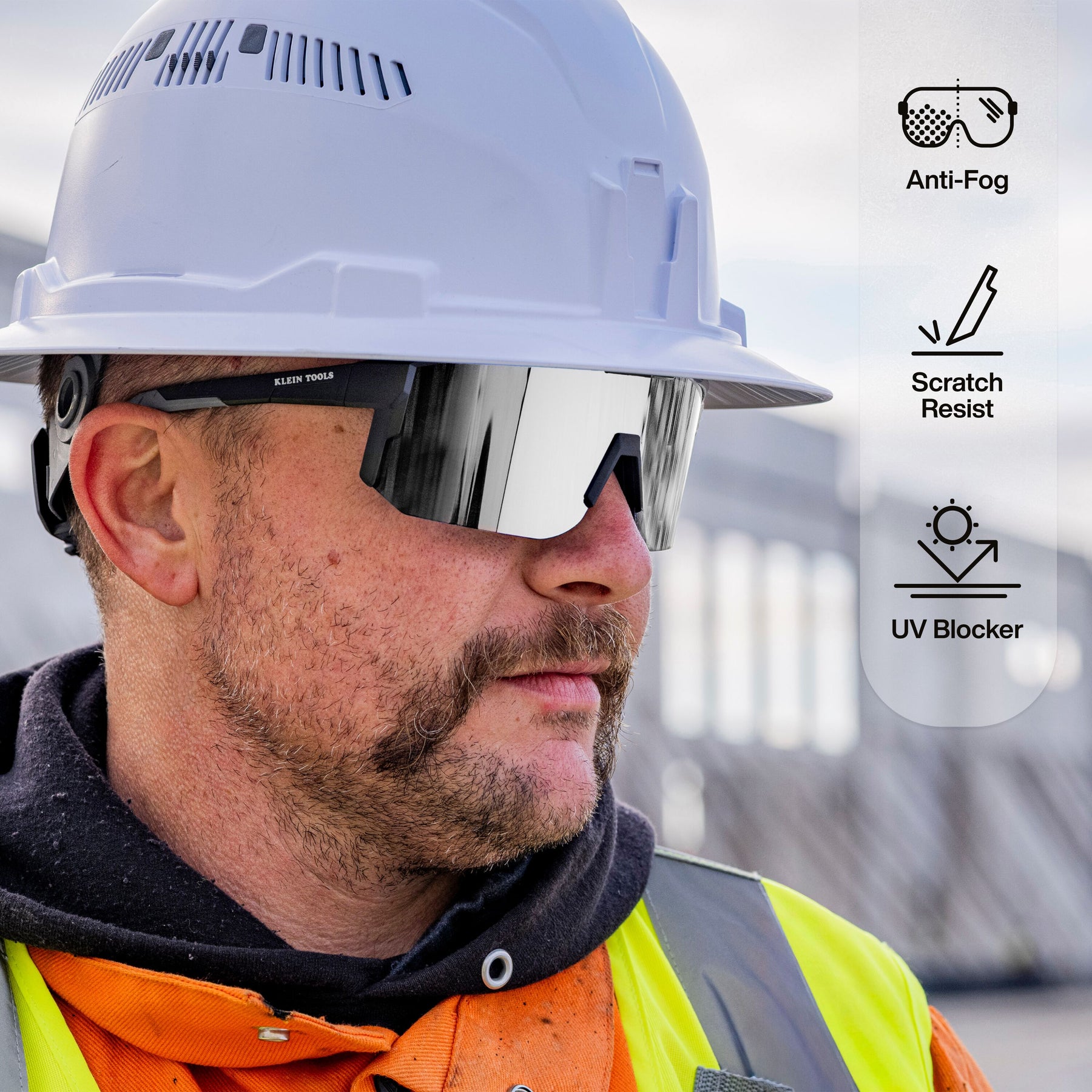 Klein Tools Silver Mirror Blade Safety Glasses feature a polarized lens for superior glare reduction in bright, outdoor environments. Meets ANSI Z87.1+ standards for high-impact resistance while also blocking 99.9% of harmful UV rays. Anti-fog and scratch-resistant coatings ensure clear vision, while the rubberized nose and stems provide a secure, comfortable fit.Klein Tools 03003 Polarized Blade Safety Glasses, Silver Lens