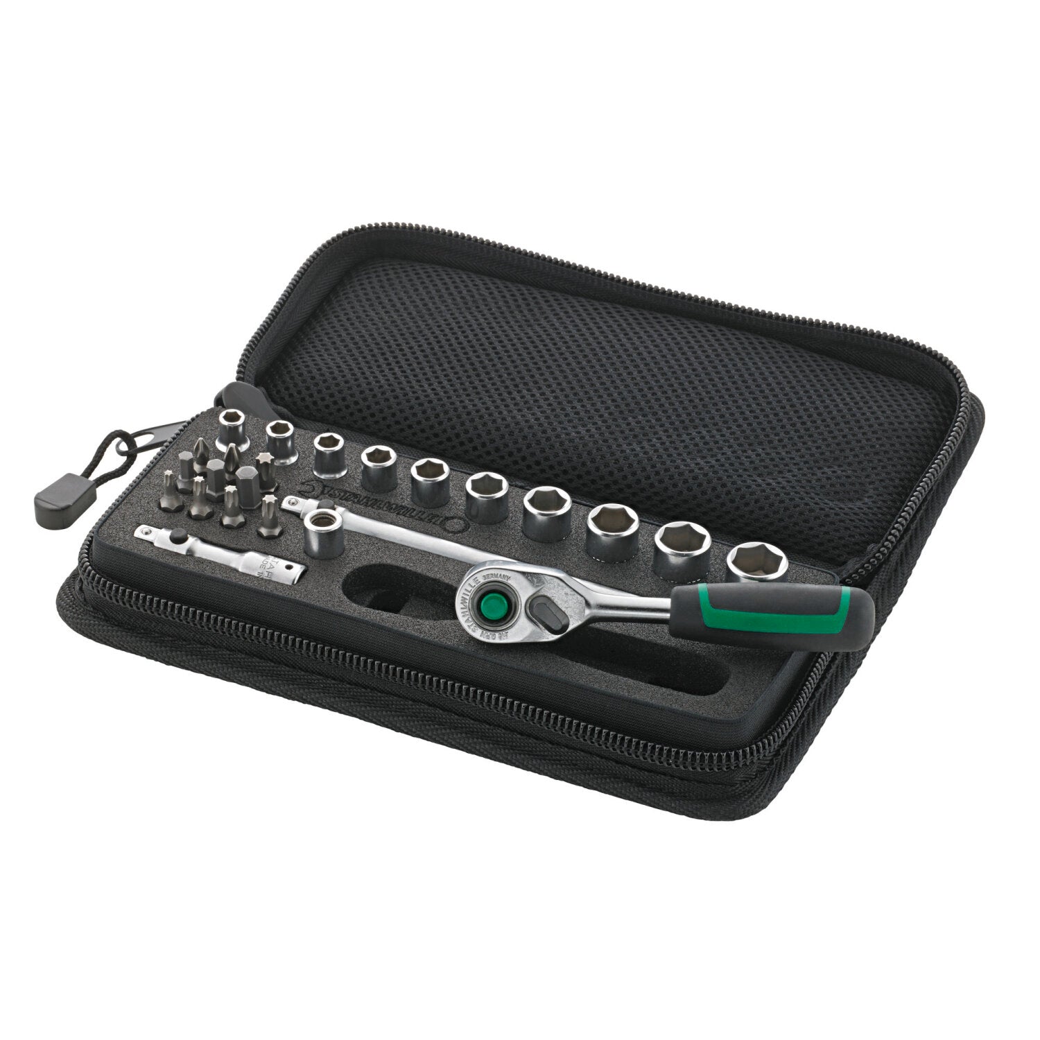 - Made in Germany - STAHLWILLE 1/4" socket wrench set 24-pieces, QR ratchet, 2 extensions, bit holder, 10 nuts 5-13 mm, slotted (PH)-, INHEX-, and TORX® bits, 96010127
